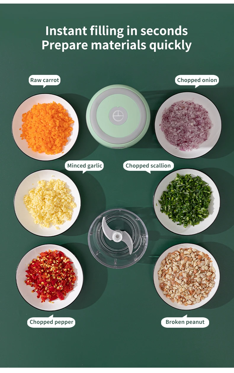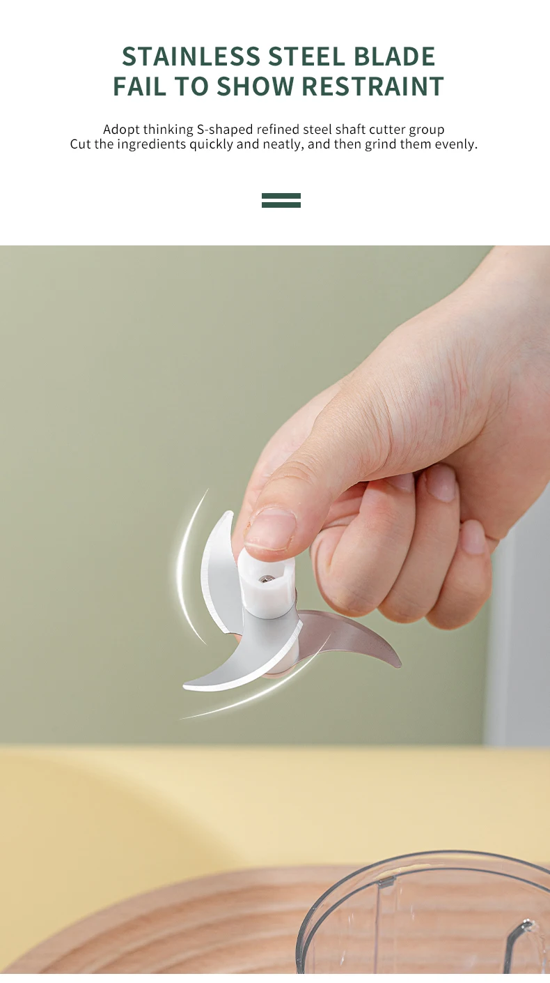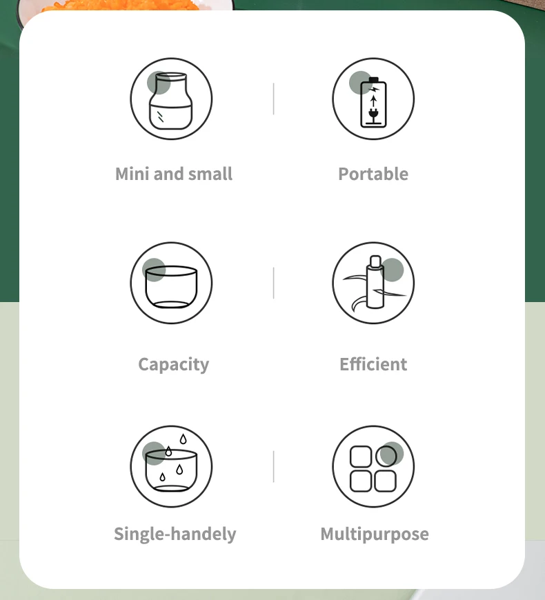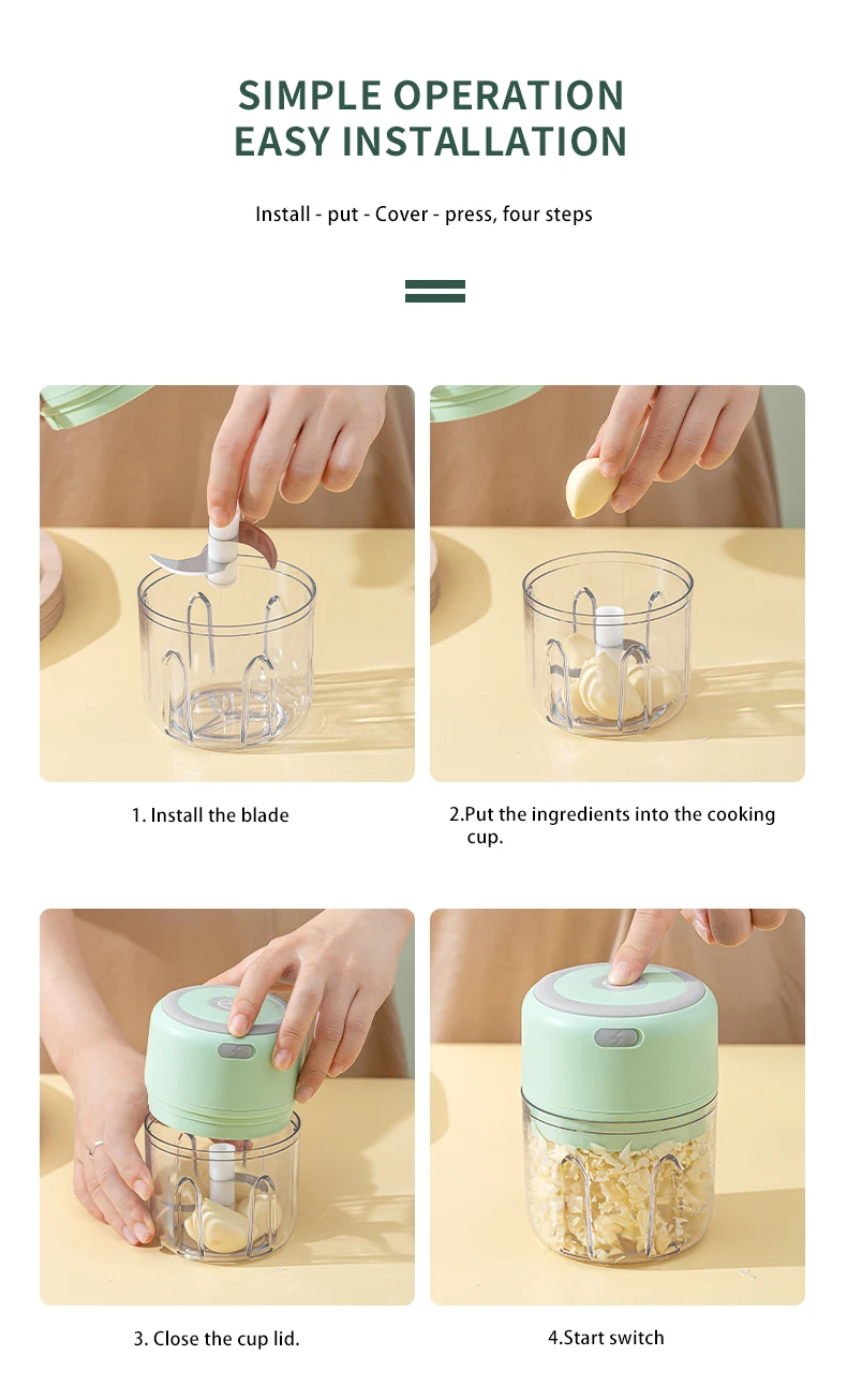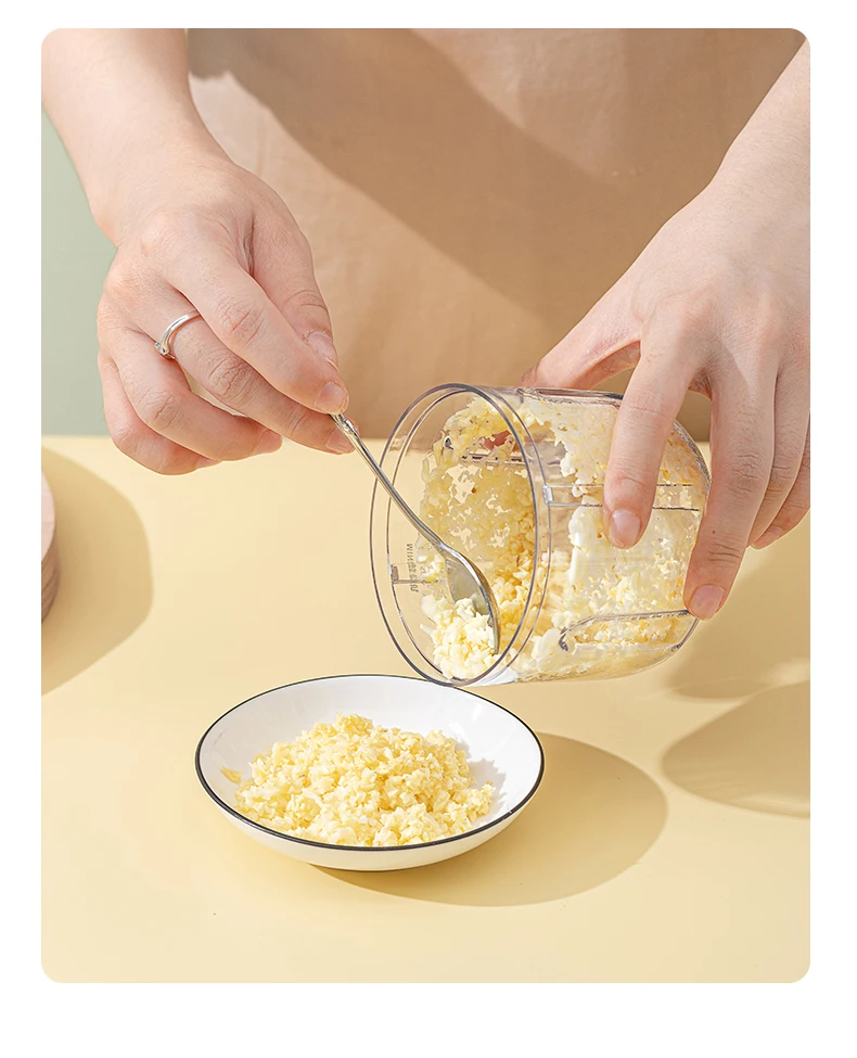 3. corte rapidamente: a lâmina afiada do cortador de alho pode rapidamente cortar alho, temperos, nozes, legumes, carne, gelo, etc. muito adequado para alimentos pequenos. Você pode usá-lo para cozinhar, suplemento alimentar para bebê, bebidas smoothie.